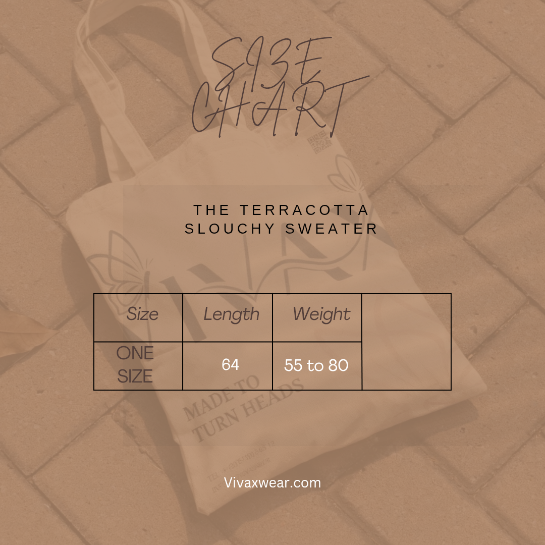Features a warm terracotta tone and a cozy, effortless silhouette.